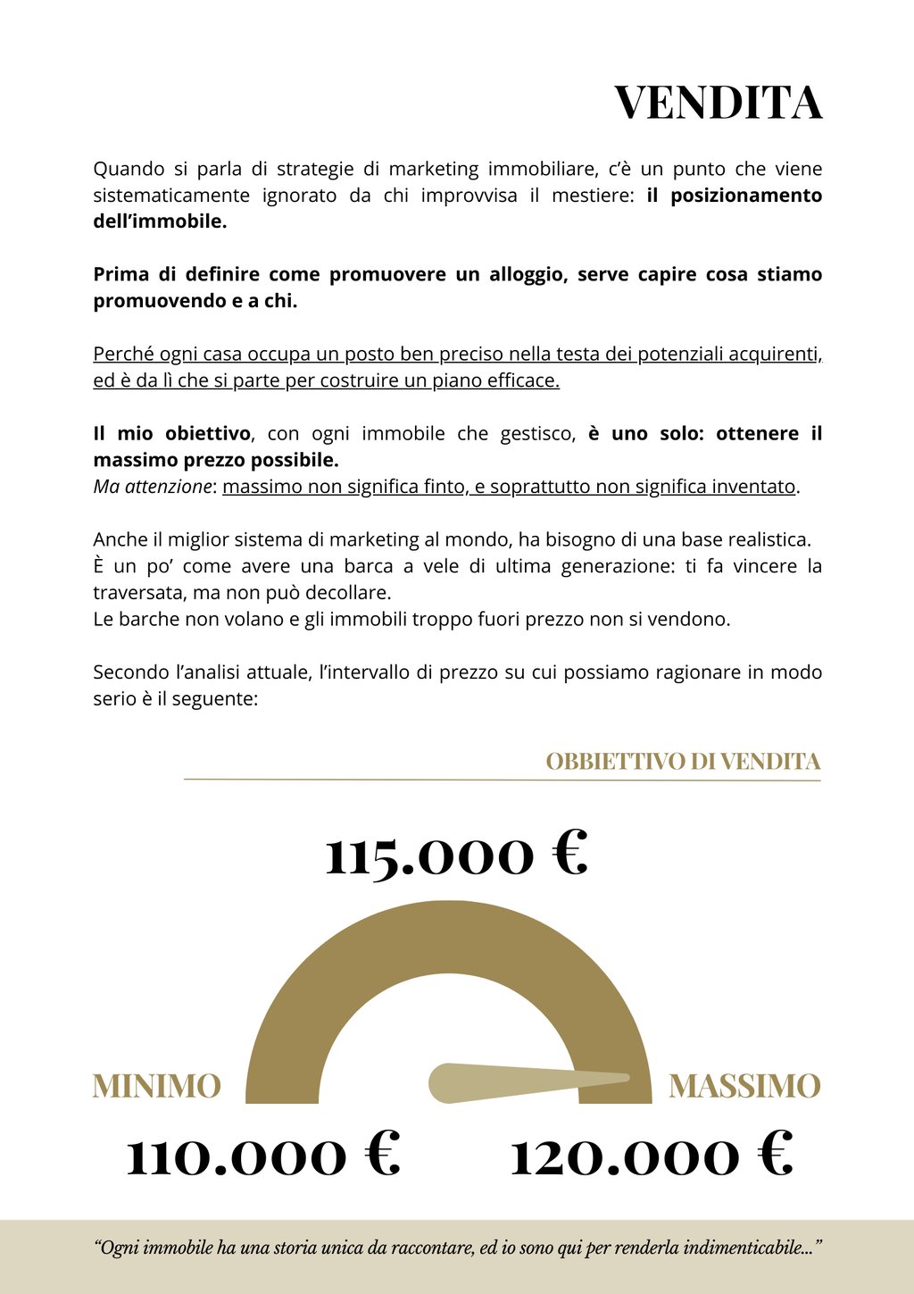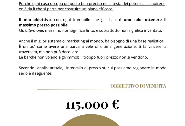 Non ti diamo solo una valutazione ma delineiamo un obbiettivo di vendita da raggiungere.